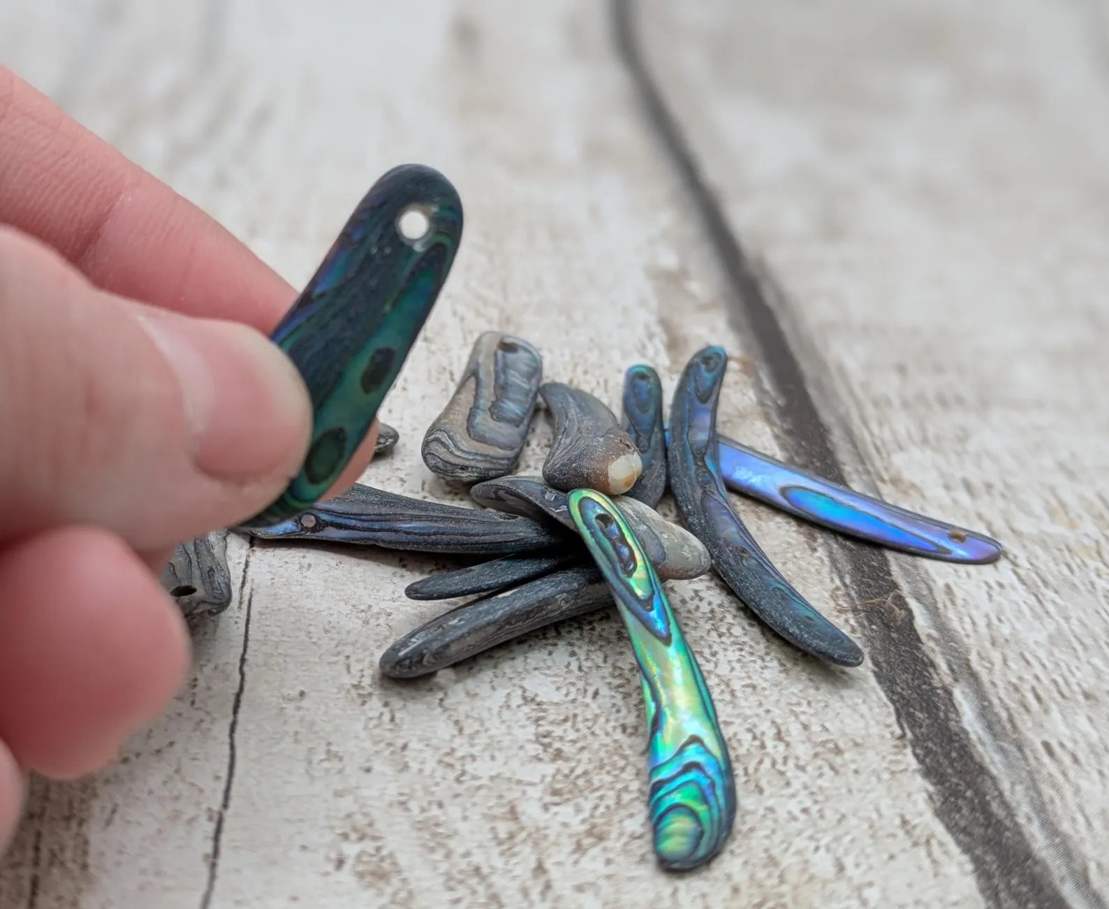 10 unpolished Rainbow wild beach combed NZ Pāua Shell rim Beads – Top-Drilled Natural Abalone for Jewelry Making & Art Projects.