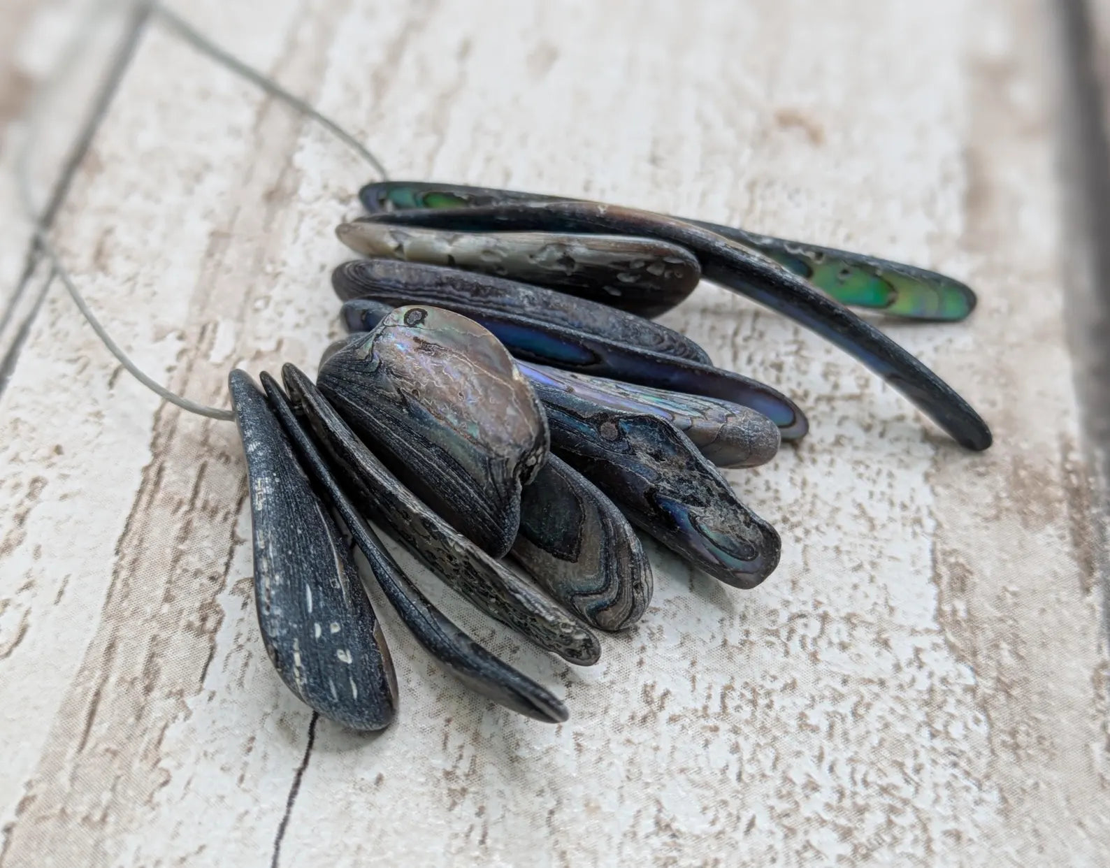 Transform your jewelry creations with these luminous, nature-crafted Pāua shell beads. Harvested from genuine New Zealand abalone and expertly top-drilled in-studio, this set of 10 beads showcases the mesmerising kaleidoscope of seaside hues—from deep teal to shimmering magenta and electric blues.