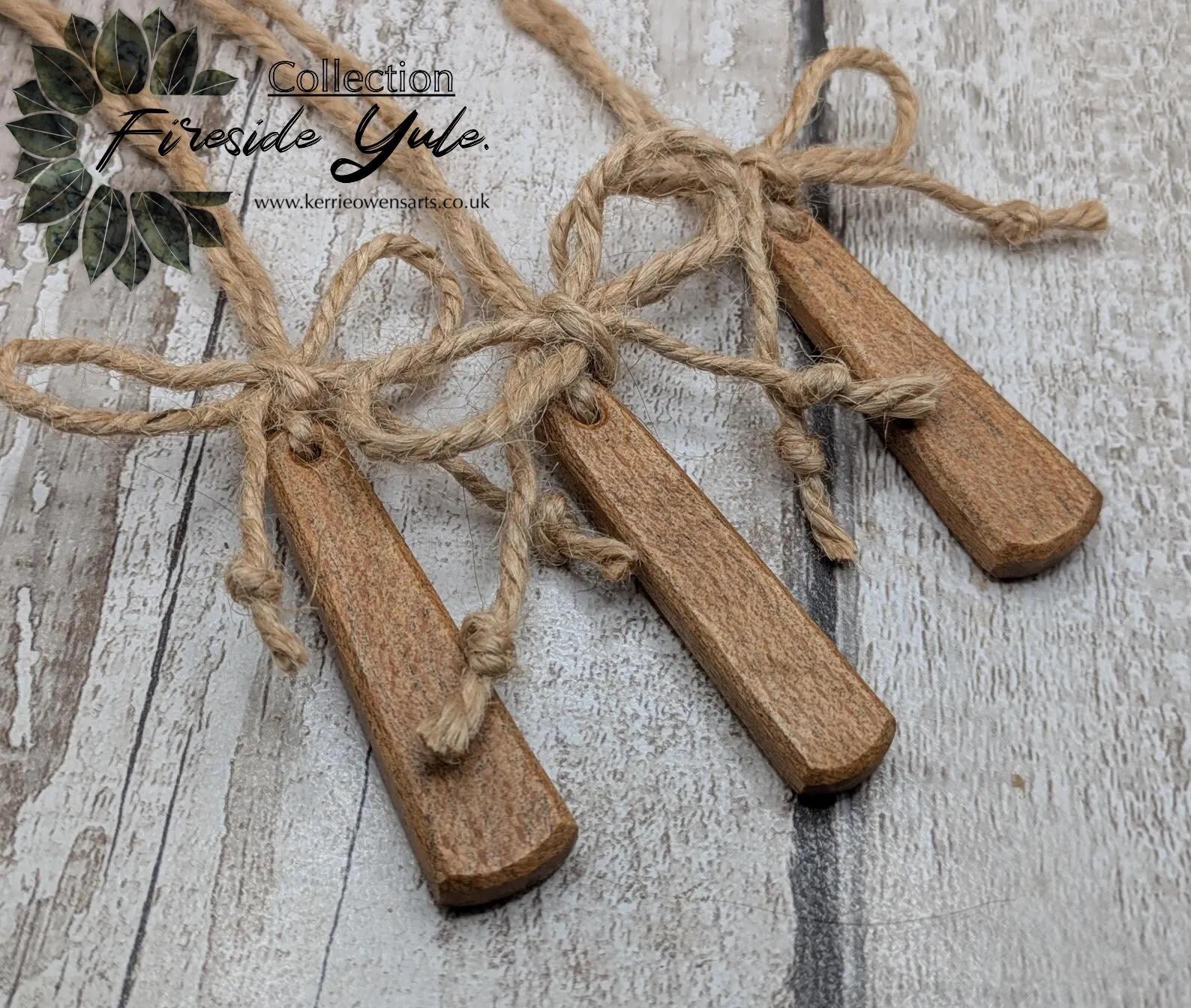 3 pack recycled wood Teardrop hanging Christmas decorations.