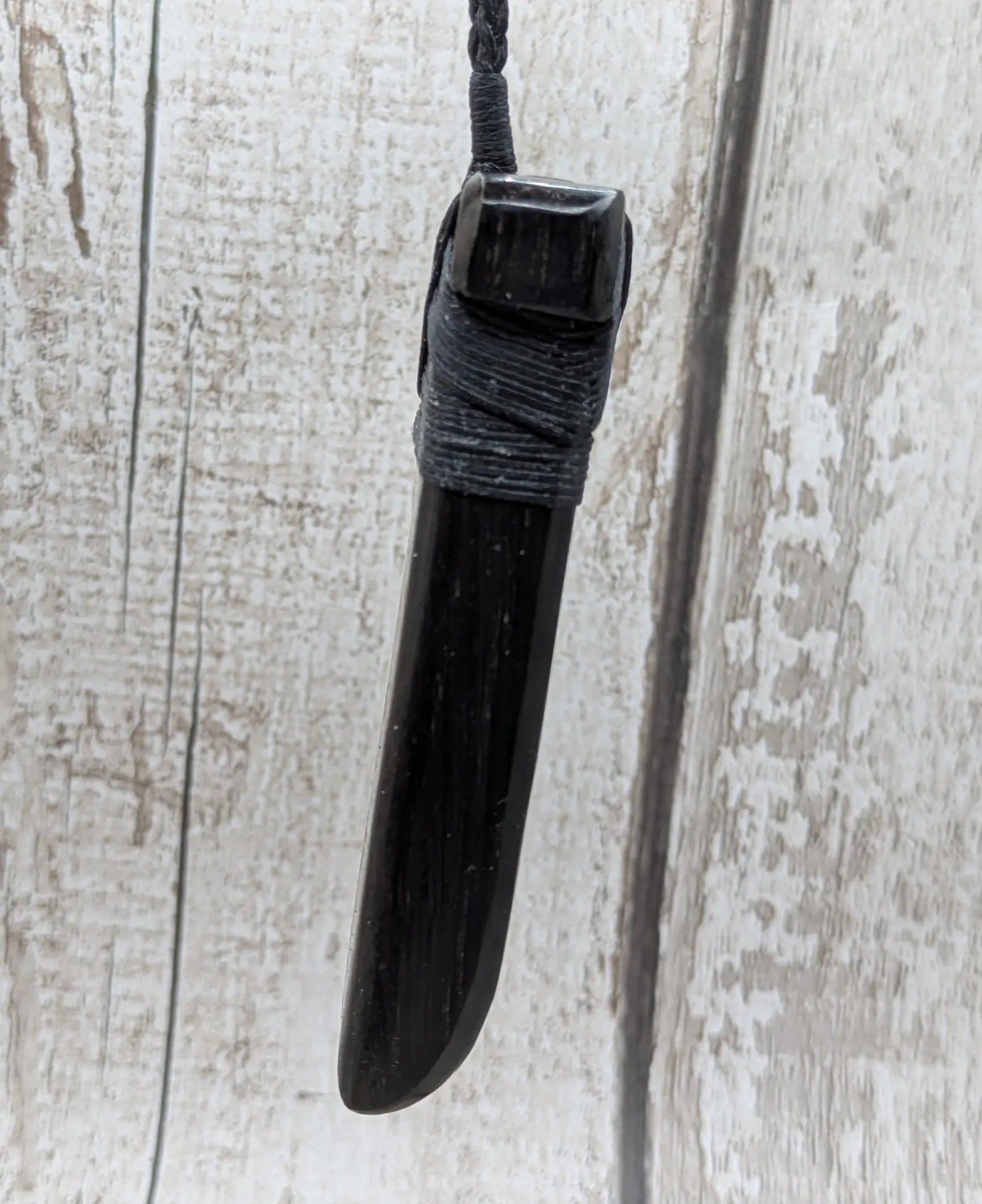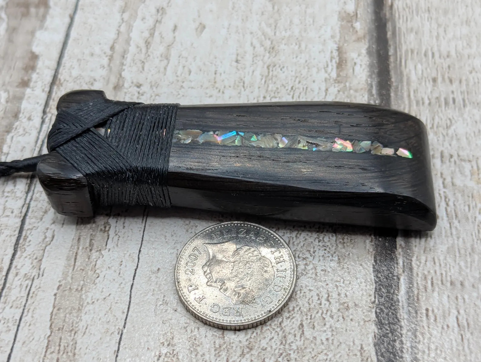 Fenland bog oak wood pendant hei toki adze with pāua shell - Māori Inspired Adze, Ancient British Wood.