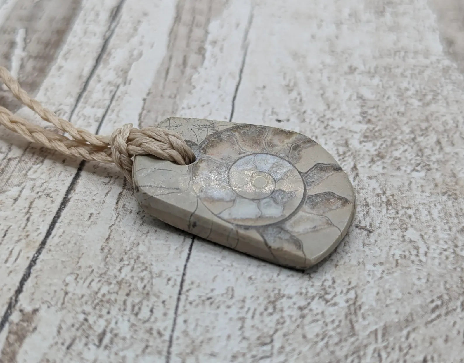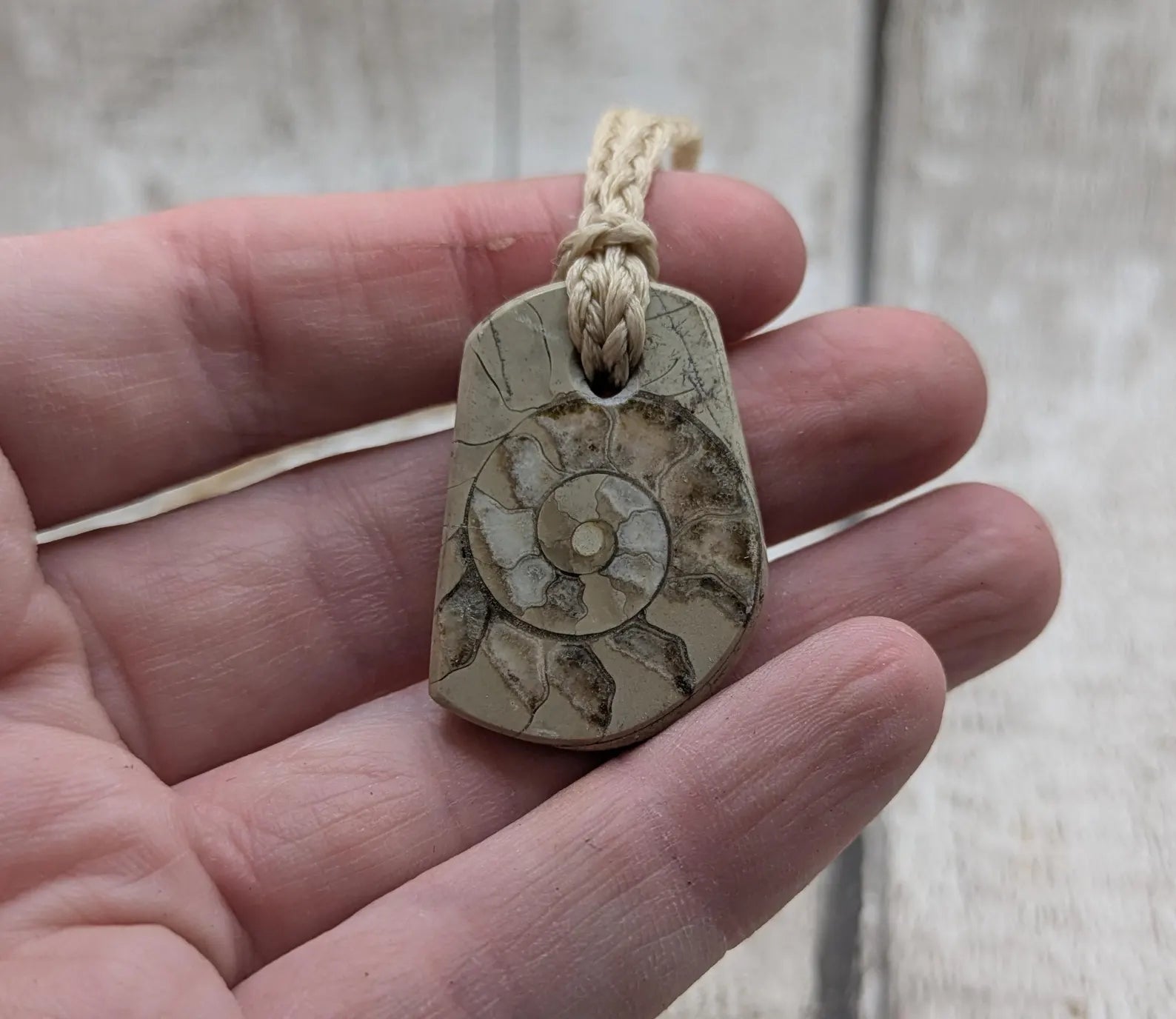 Charmouth Ammonite Fossil Pendant – Preserved in Limestone with Calcite Crystals