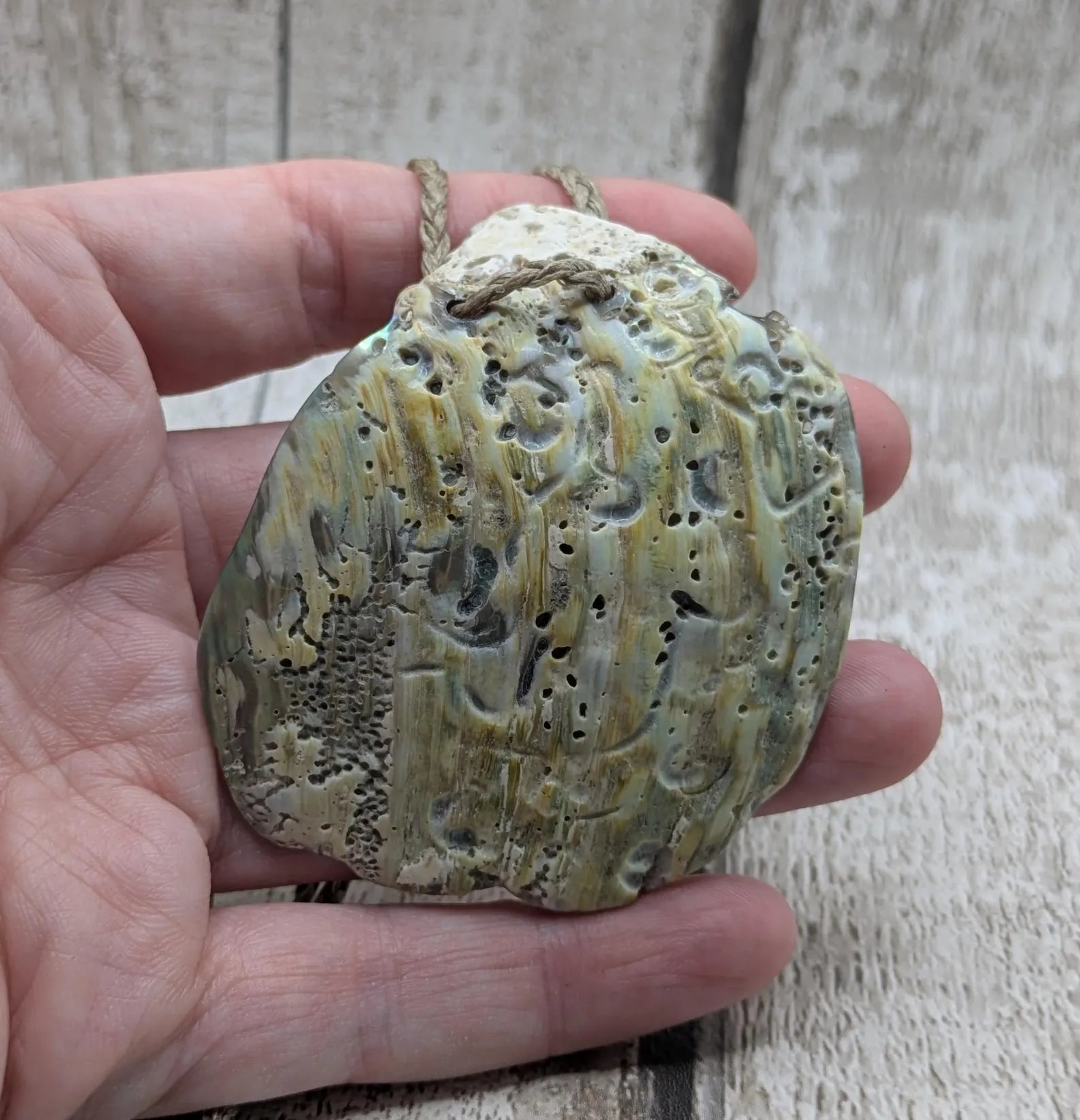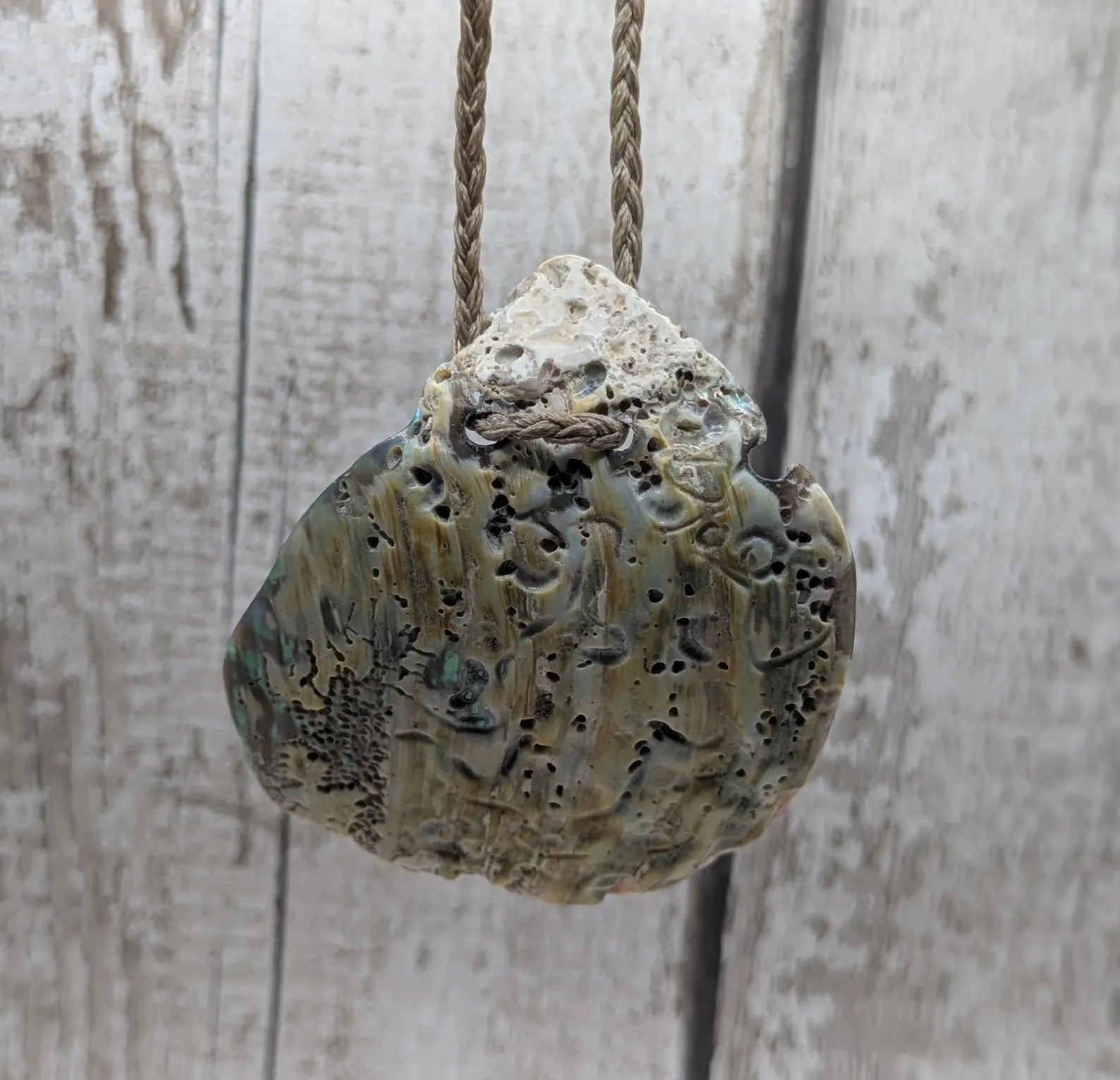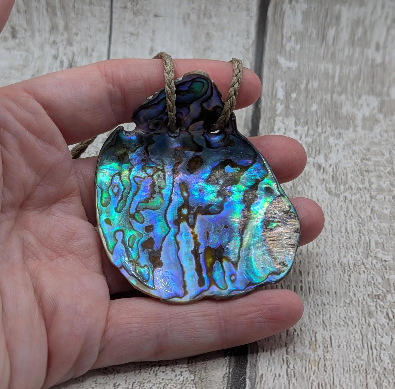 Large Freeform NZ Pāua Shell Pendant – Iridescent Abalone Statement Necklace, Natural statement Beach Jewellery.