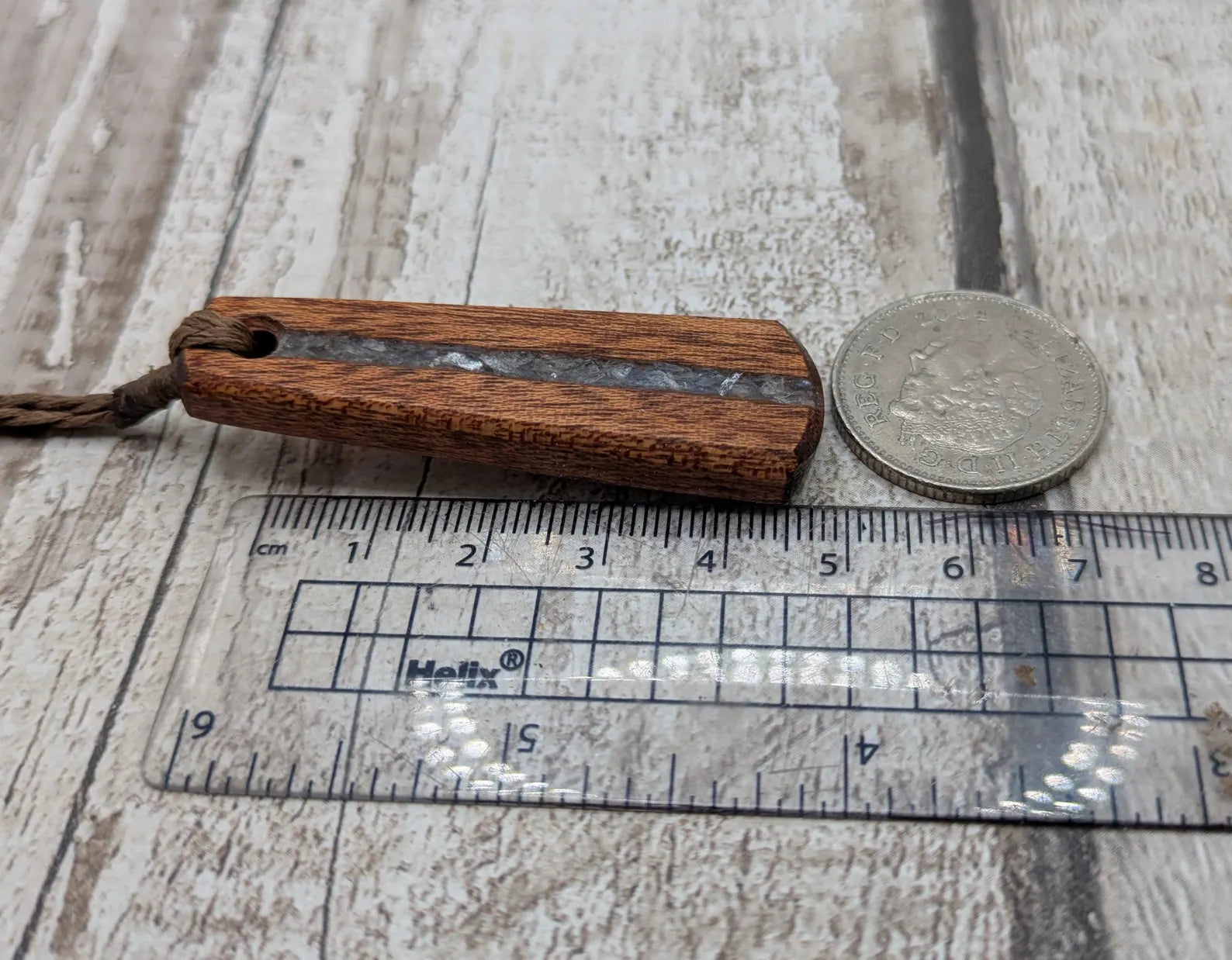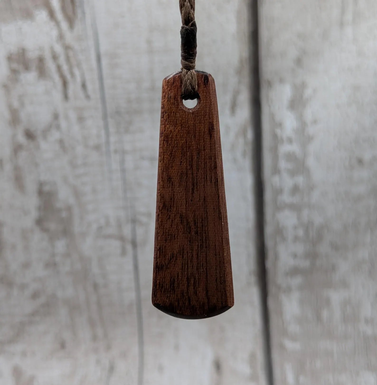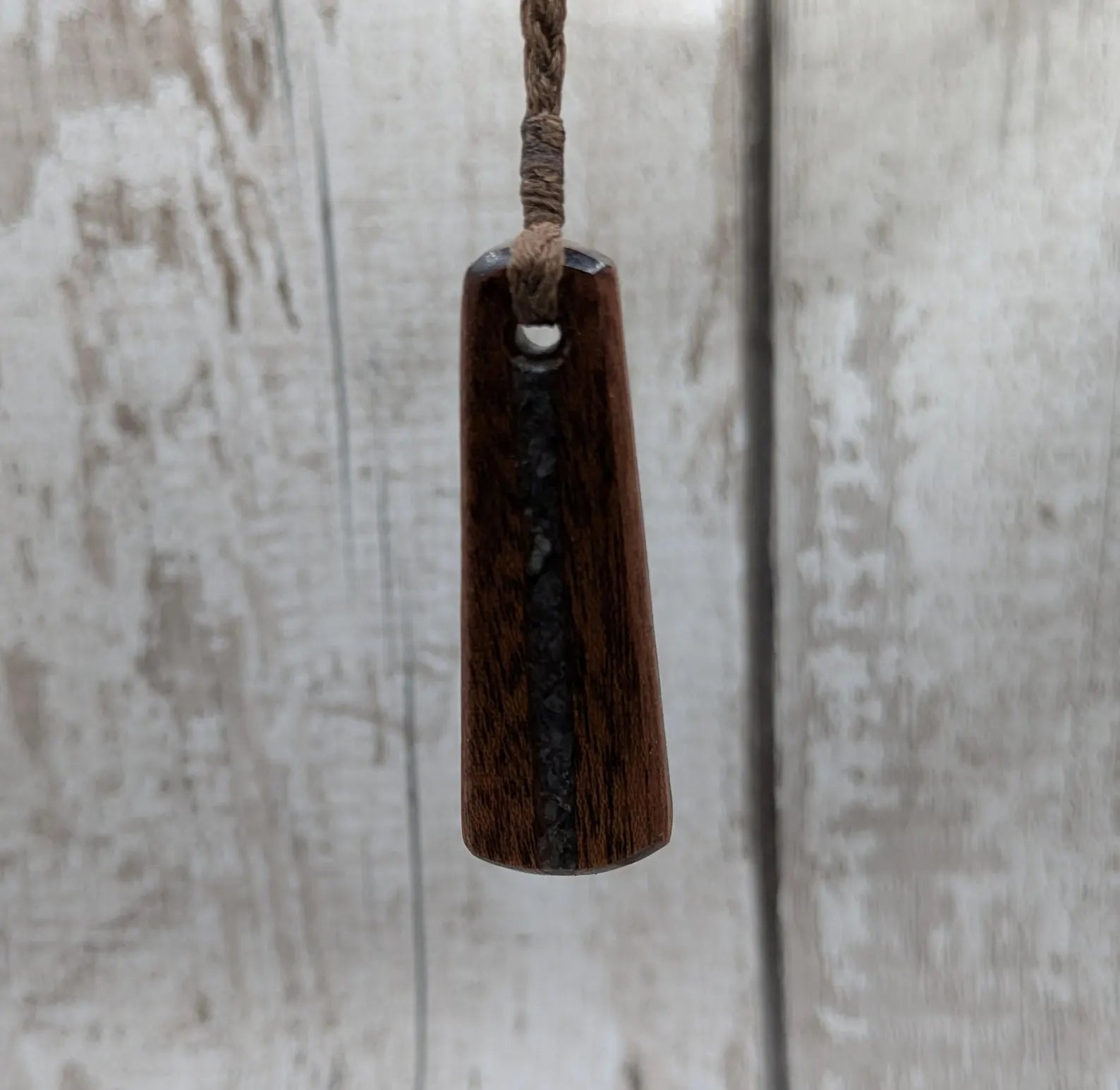 Made to order Sepele mahogany roimata teardrop pendant with blue kyanite inlay.