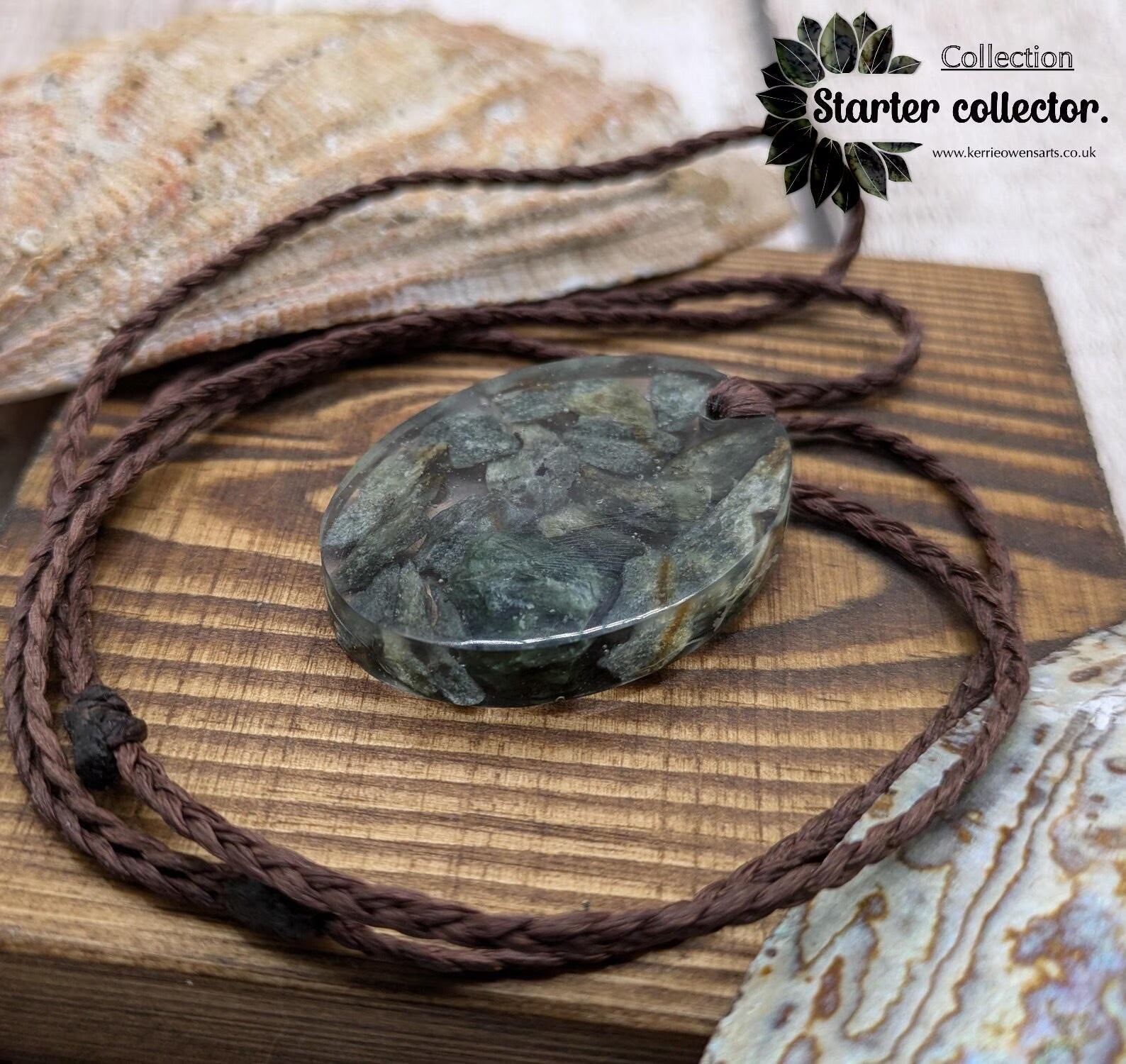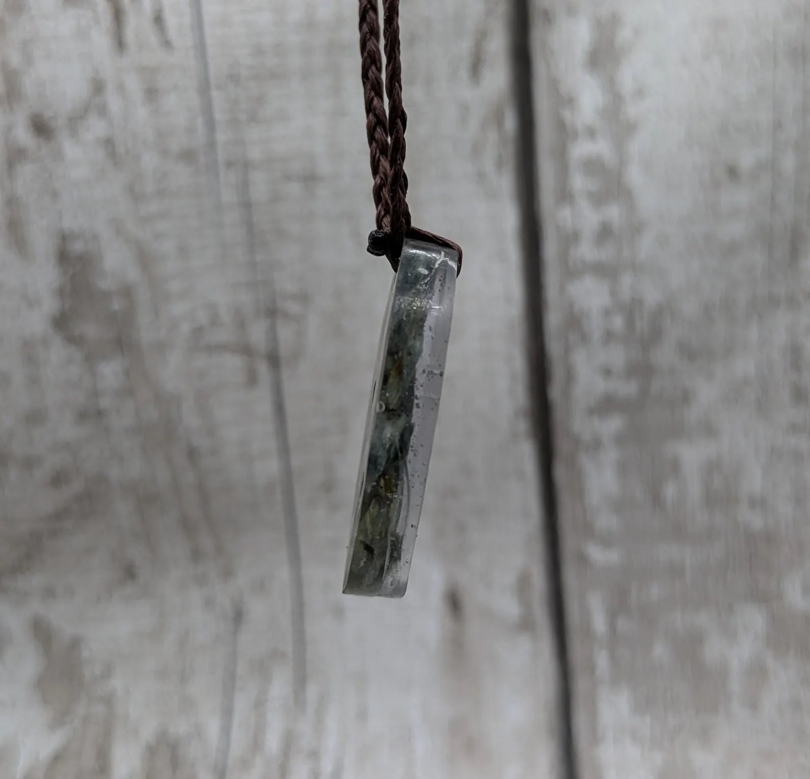 Mixed Pounamu Jade Chip Pendant – New Zealand Greenstone in Resin, Māori Inspired Necklace.