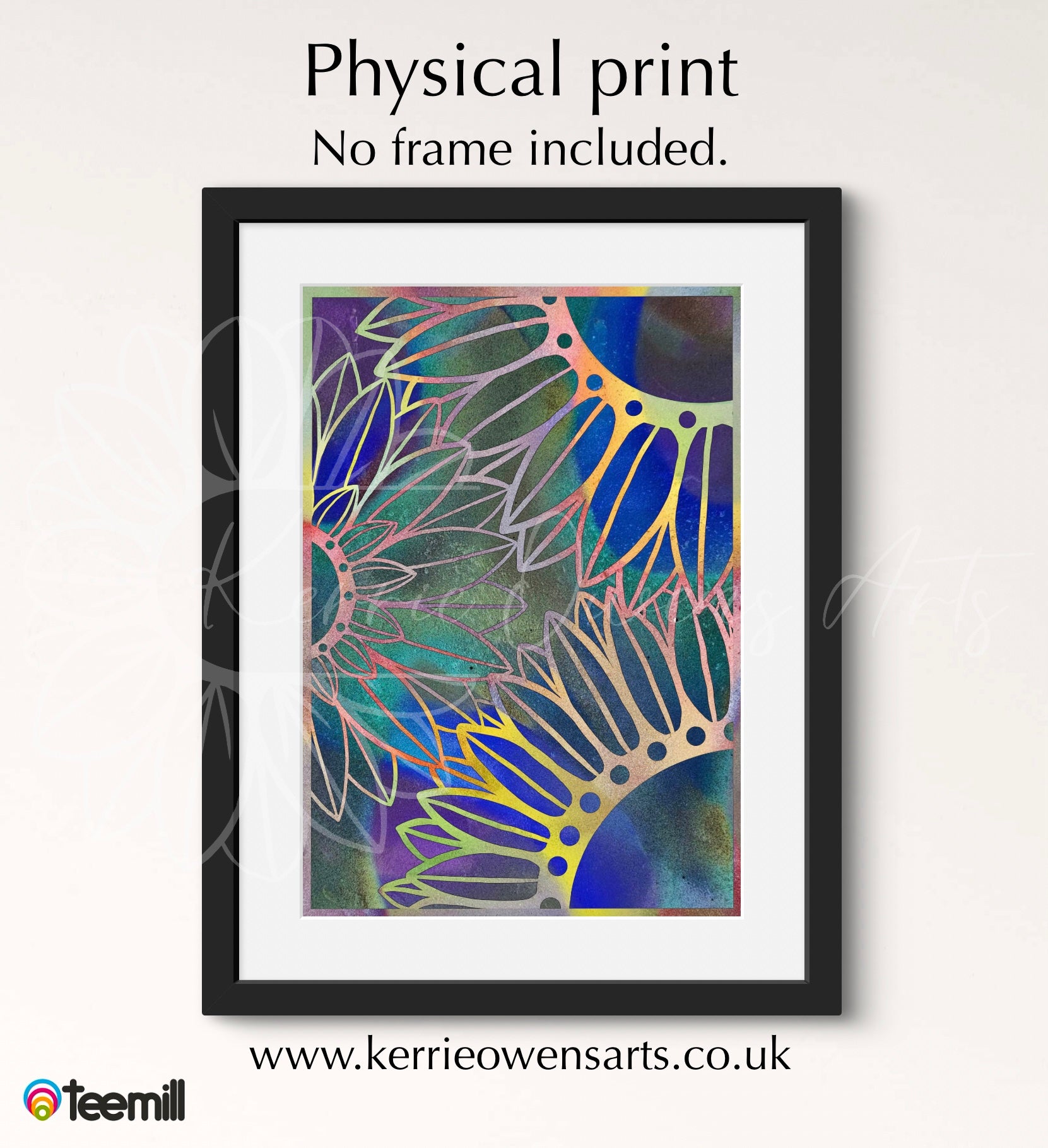 Bring a burst of vibrant sunshine into your space with the Neon Sunflowers Poster Print by Kerrie Owens Arts. 🌻 This stunning large portrait art print measures 29.7 x 42 cm (A3) and is guaranteed to brighten up any room with its bold and colourful design. Perfect for adding a touch of nature-inspired beauty to your living room, bedroom, or office, this print is printed on high-quality 300gsm 100% recycled paper, making it not only visually striking but eco-friendly too. Elevate your wall decor with the radiant charm of sunflowers - a timeless symbol of happiness and positivity. Add a touch of nature's brilliance to your home with this eye-catching art piece from Kerrie Owens Arts.