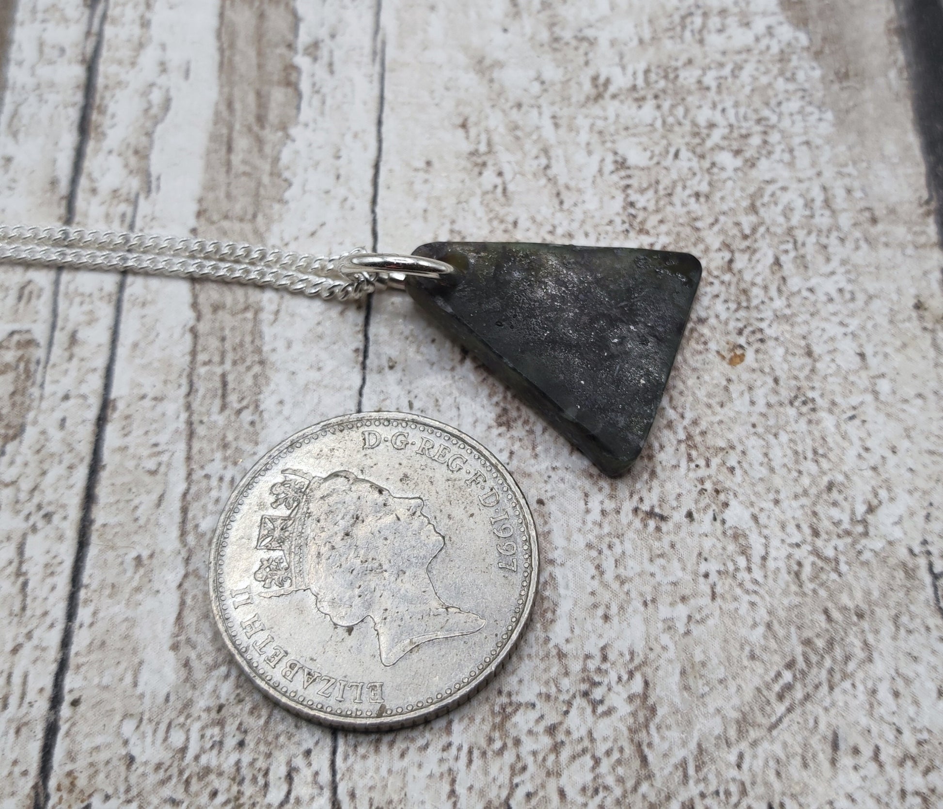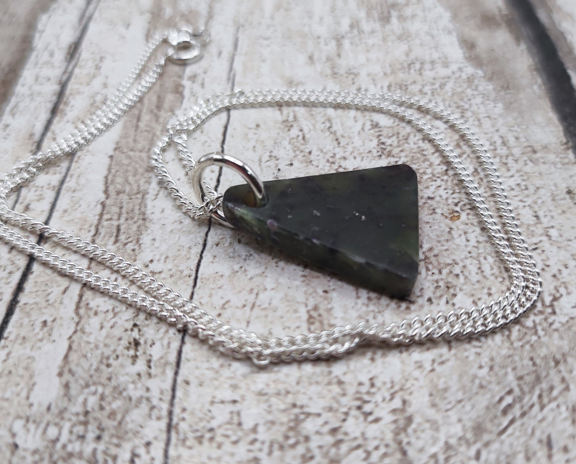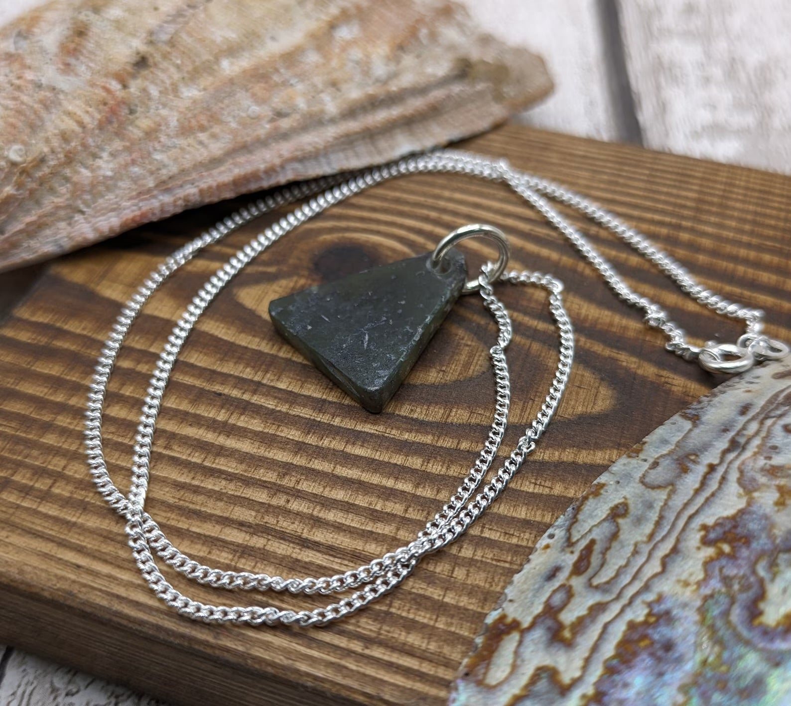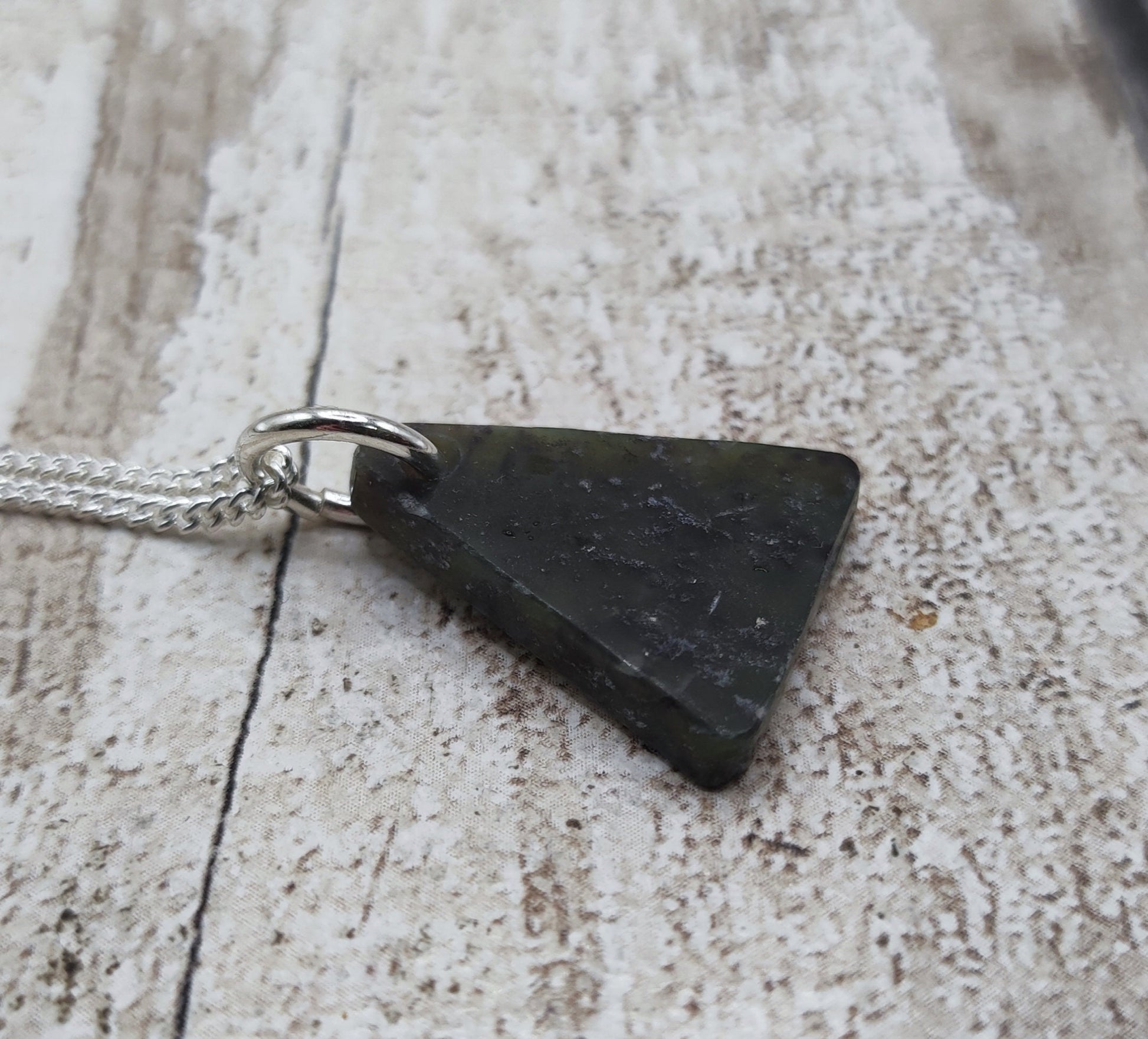 Elevate your spiritual connection with our New Zealand Pounamu Triangle Pendant. This unique piece, crafted from recycled nephrite jade sourced from a second-hand clock, carries a profound energy that resonates with centuries of Māori tradition.