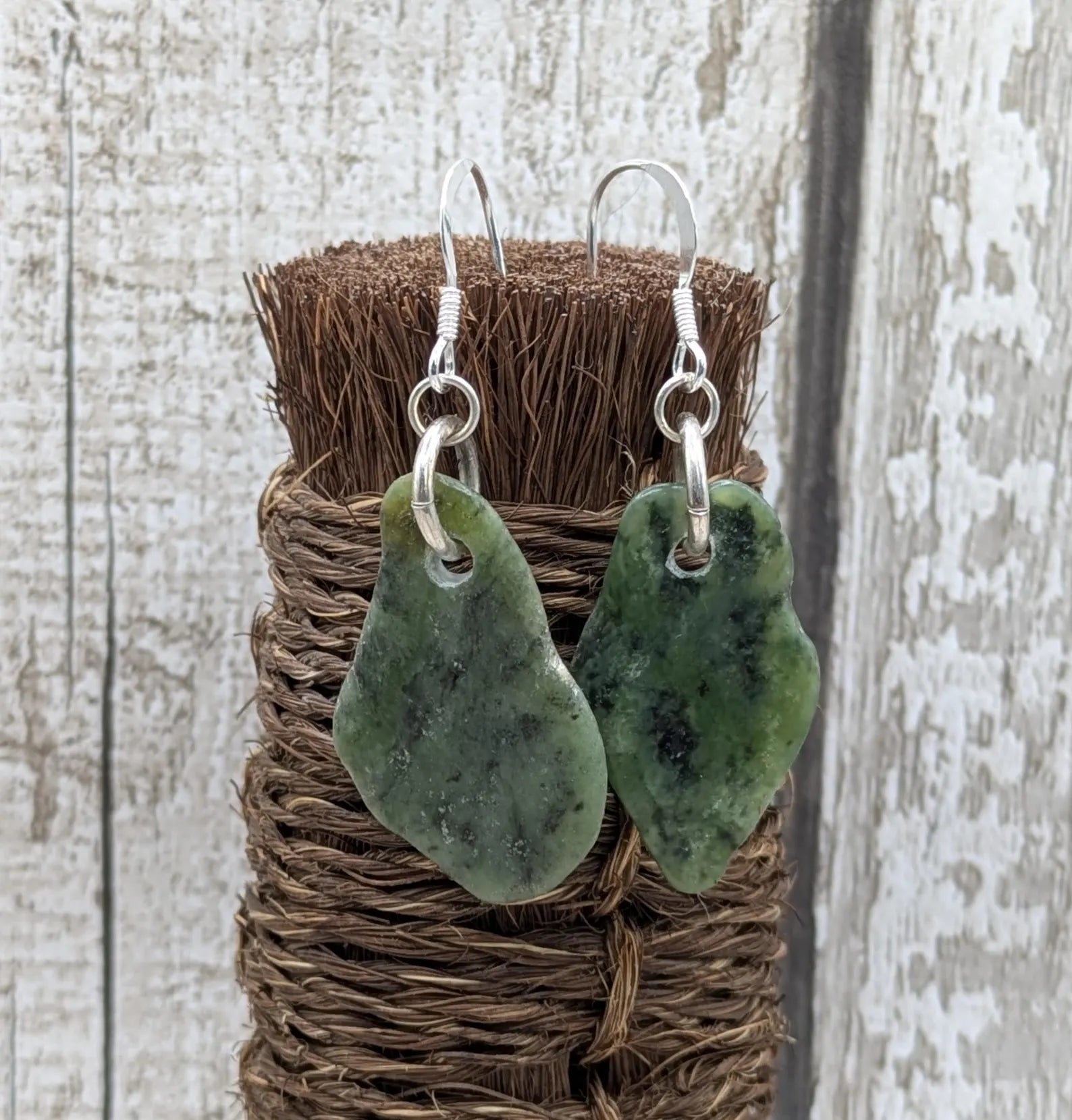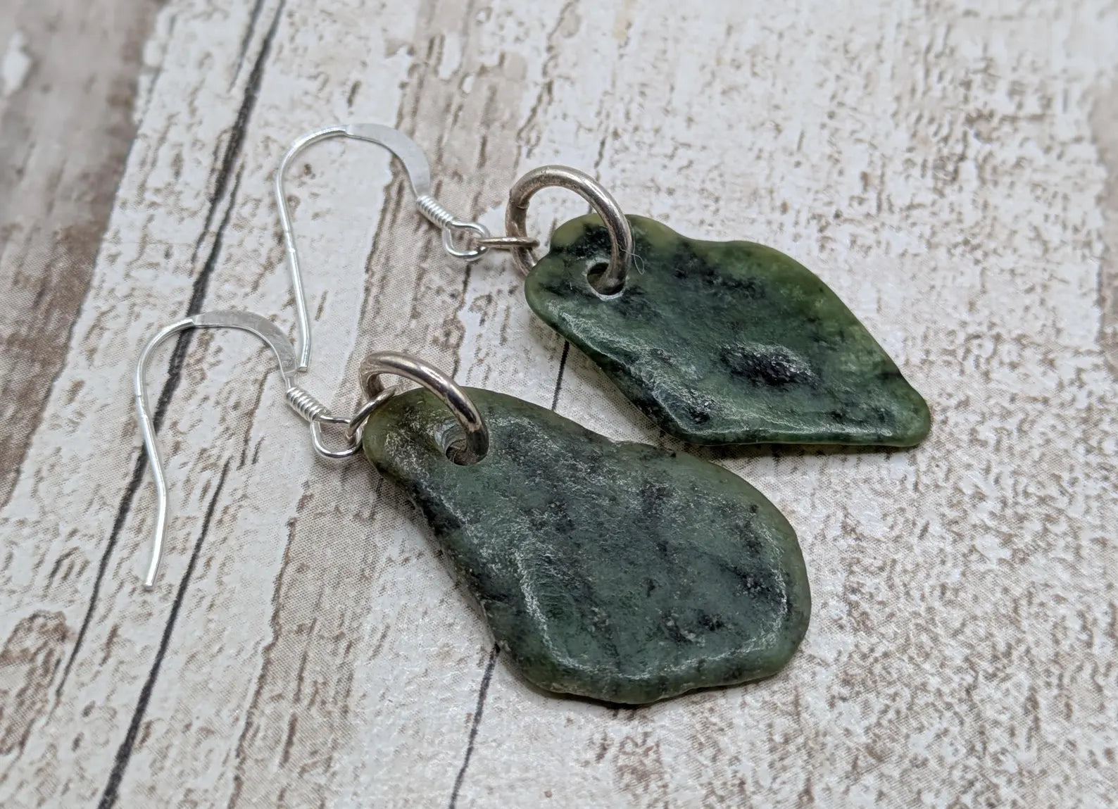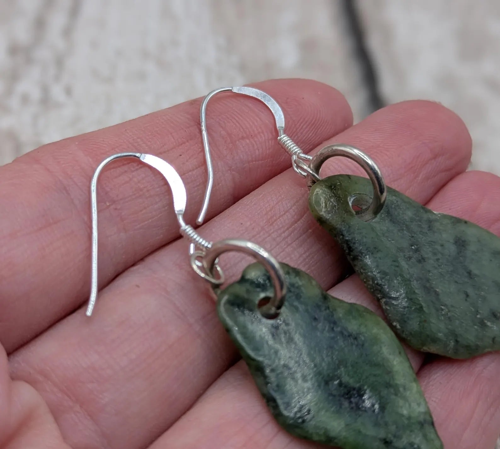 New Zealand pounamu Greenstone jade fish hook earrings.