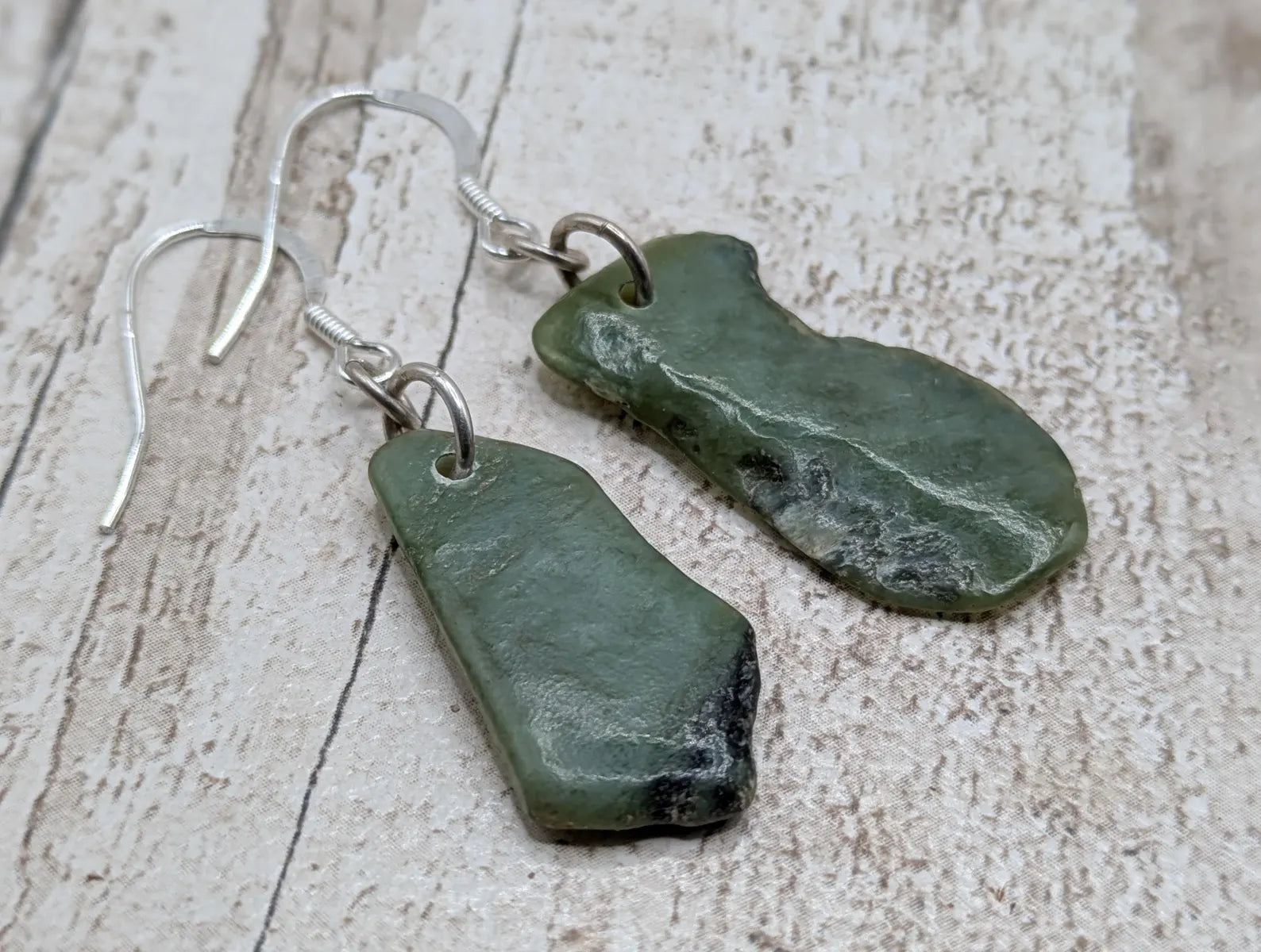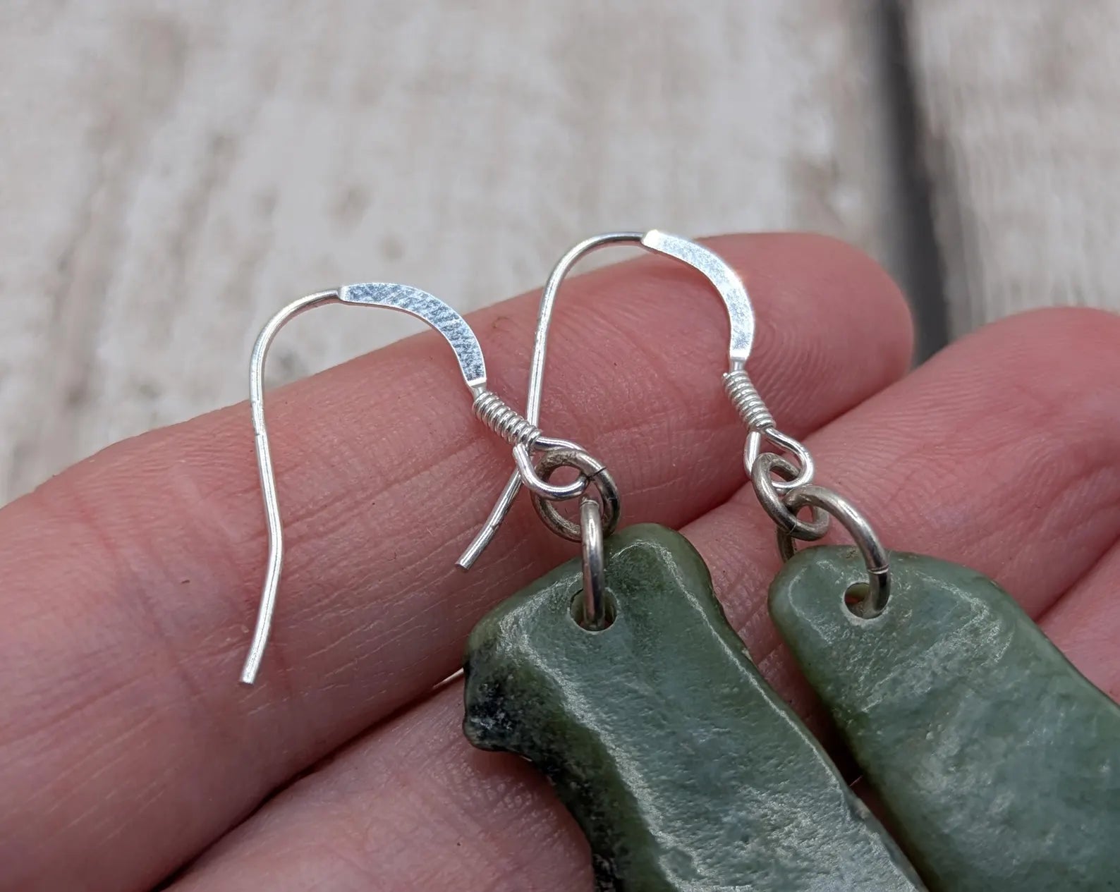 New Zealand pounamu Greenstone jade fish hook earrings, fish hook findings.