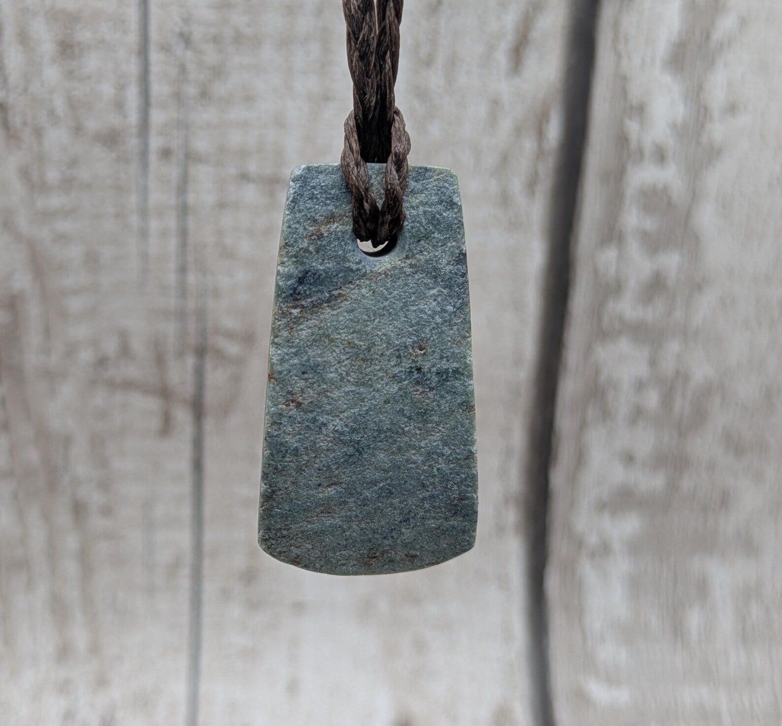 In Māori tradition, the Hei Toki represents strength, authority, and skill. The trapezoid shape evokes stability and grounding, while the raw back honours the stone’s wairua (spirit), reminding the wearer of the sacred balance between crafted skill and natural power.