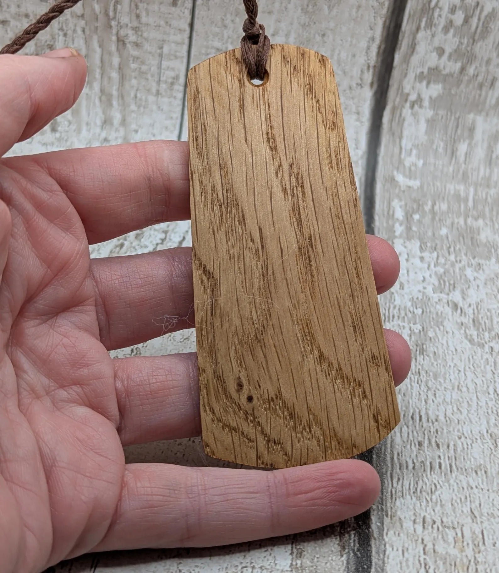 The natural grain and warm tones of oak provide a grounded backdrop for the intricate geometric patterns. Finished with a waxed polyester cord tassel accented with tumbled rose quartz beads, this piece combines stability, balance, and gentle heart energy.