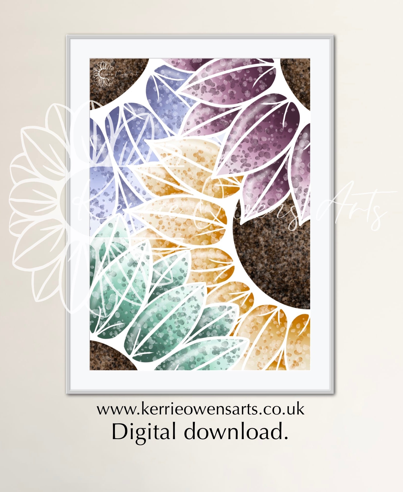 Paint splattered rainbow sunflowers, illustration, digital download.