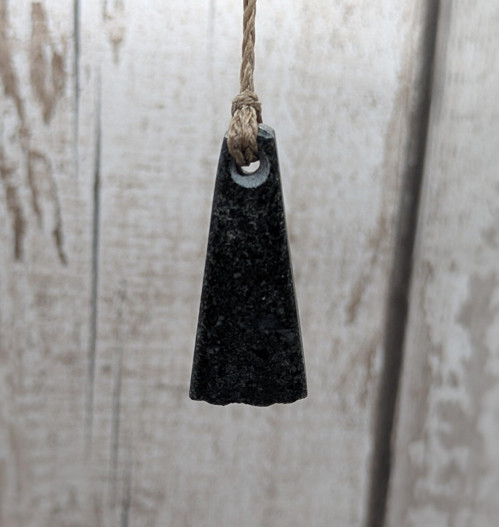 This Roimata drop pendant is crafted from Welsh Preselli Bluestone, the same ancient stone that forms the inner ring of the iconic Stonehenge in Salisbury. Preselli Bluestone is renowned for its deep, rich hues, featuring shades of blue-grey with flecks of white and green, which add a natural, earthy character to the stone.
