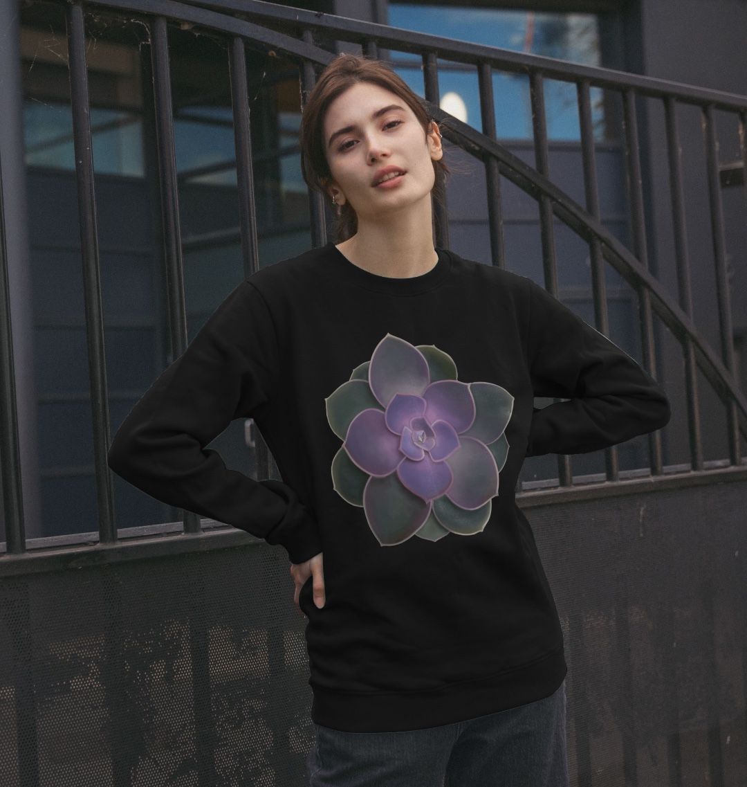 Introducing the stunning purple to green ombré women’s sweatshirt by Kerrie Owens Arts. This beautifully crafted crewneck jumper is made from certified organic cotton, offering ultimate comfort and style. Weighing 300g/m2, it strikes the perfect balance between warmth and breathability, making it an ideal choice for any season.