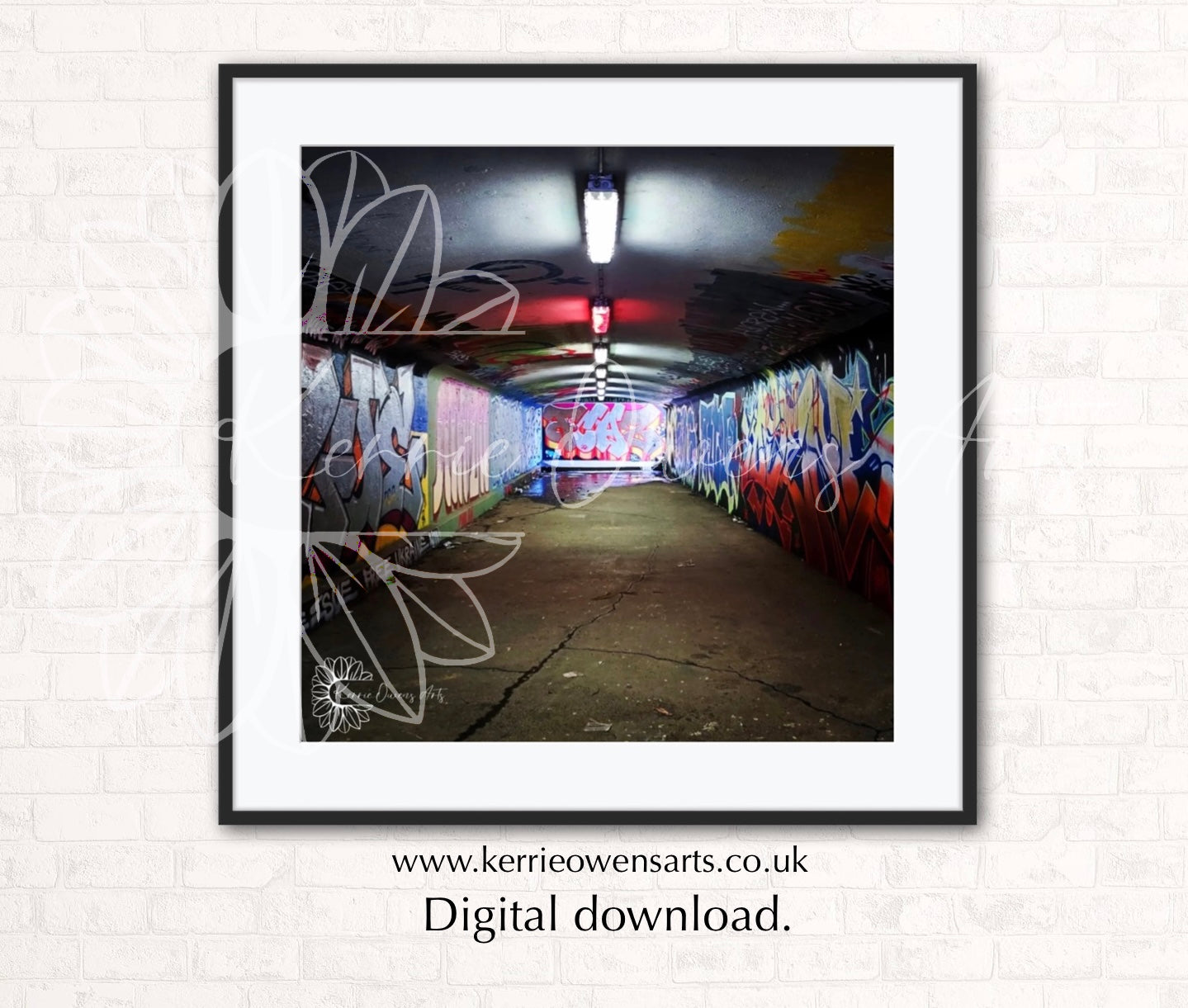 Capture the mystique of Reykjavik with our "Reykjavik Underground" photographic print. Instantly download this digital artwork and bring a piece of Icelandic beauty into your space.