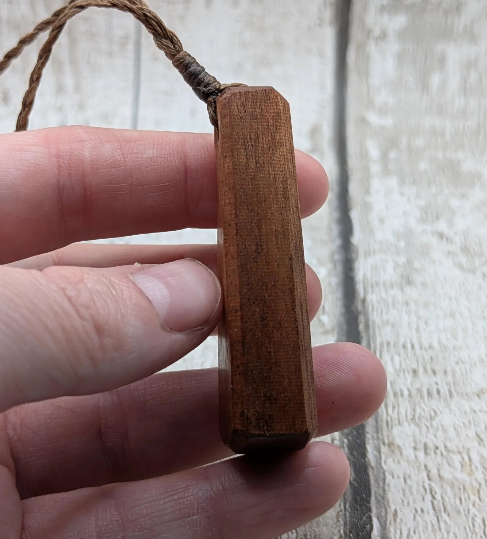 The Sapele Mahogany is hand-carved with great care to highlight the wood’s natural beauty and grain, ensuring that each pendant is a one-of-a-kind piece. Suspended from an adjustable waxed nylon cord, this pendant can be customized to suit your preferred length and style, allowing for easy wear and versatility. The natural finish, enhanced with linseed oil and beeswax polish, adds protection while accentuating the deep, rich hues of the wood.